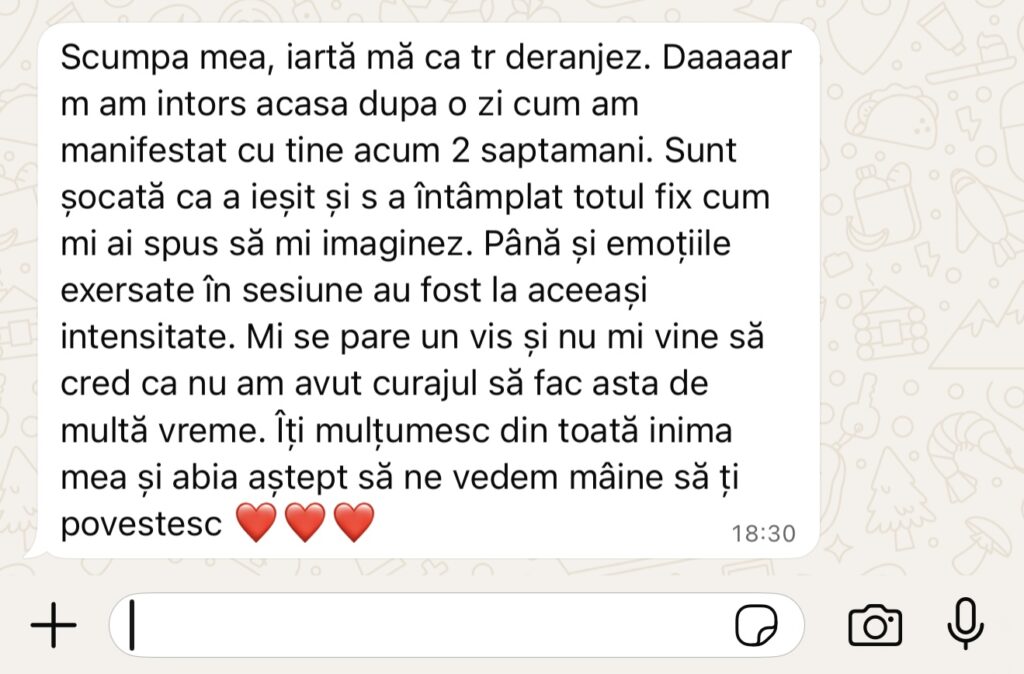 Credem că transformarea autentică nu ar trebui să fie un lux, ci o alegere accesibilă oricui își dorește să trăiască mai conștient, mai clar și mai împăcat. Ești gata să-ti transformi viața?